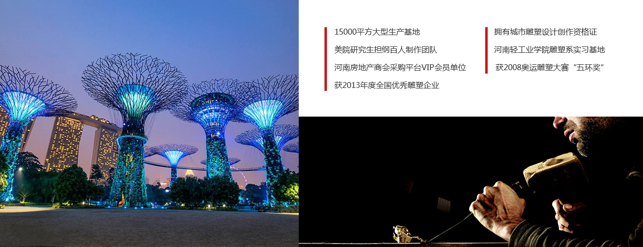 河南大象雕塑設(shè)計(jì)有限公司是一家集城市雕塑、園林景觀、建筑外裝藝術(shù)的設(shè)計(jì)施工為一體的藝術(shù)工程公司。一直致力個(gè)性需求的藝術(shù)創(chuàng)作,在各種活動(dòng)中的背后都能看到大象雕塑的身影。其創(chuàng)始人張野則是一位長(zhǎng)期活躍于空間藝術(shù)圈的青年雕塑藝術(shù)家,而且其本人也是一位在圈內(nèi)頗有名聲的藝術(shù)老師,帶領(lǐng)團(tuán)隊(duì)創(chuàng)作工藝20年之久。